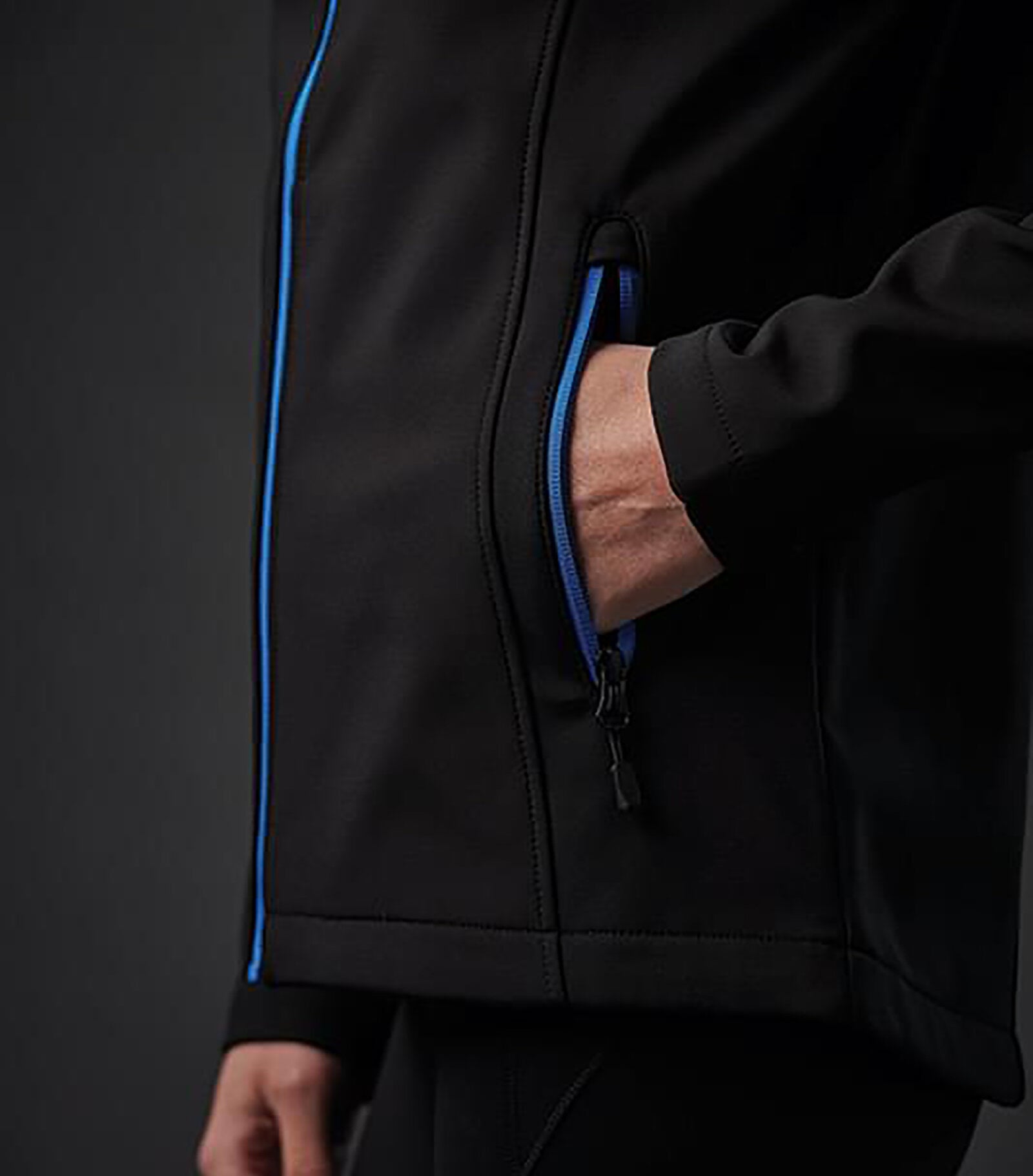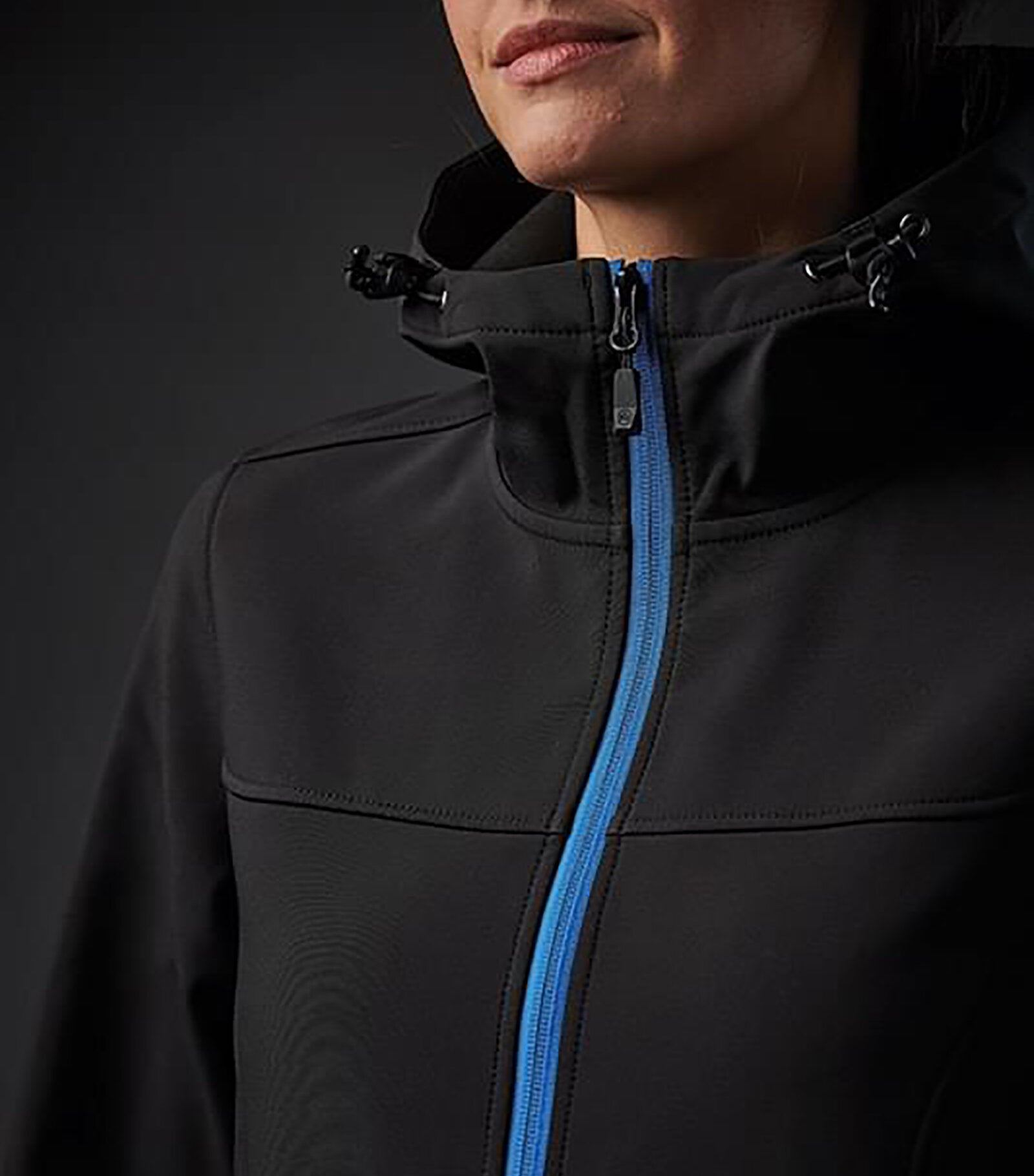 Högpresterande jacka i Softshell, med vattenavvisande tyg för grundläggande väderskydd och inre fleece. Två fickor fram med en fast huva med dragsko och en extra hög krage. Justerbar nedtill.