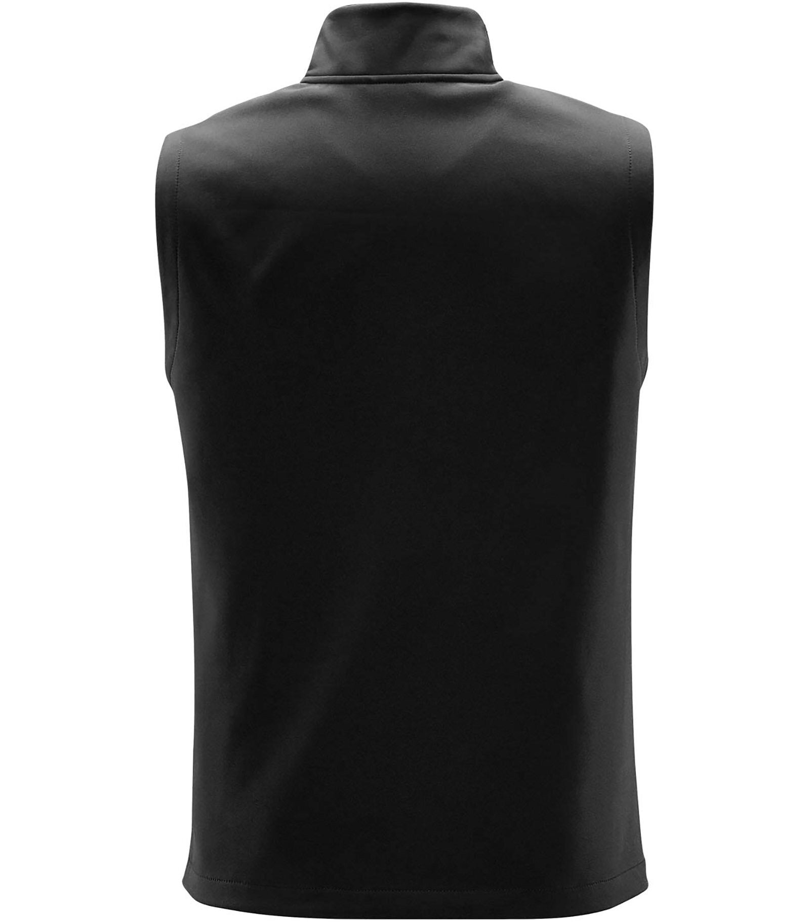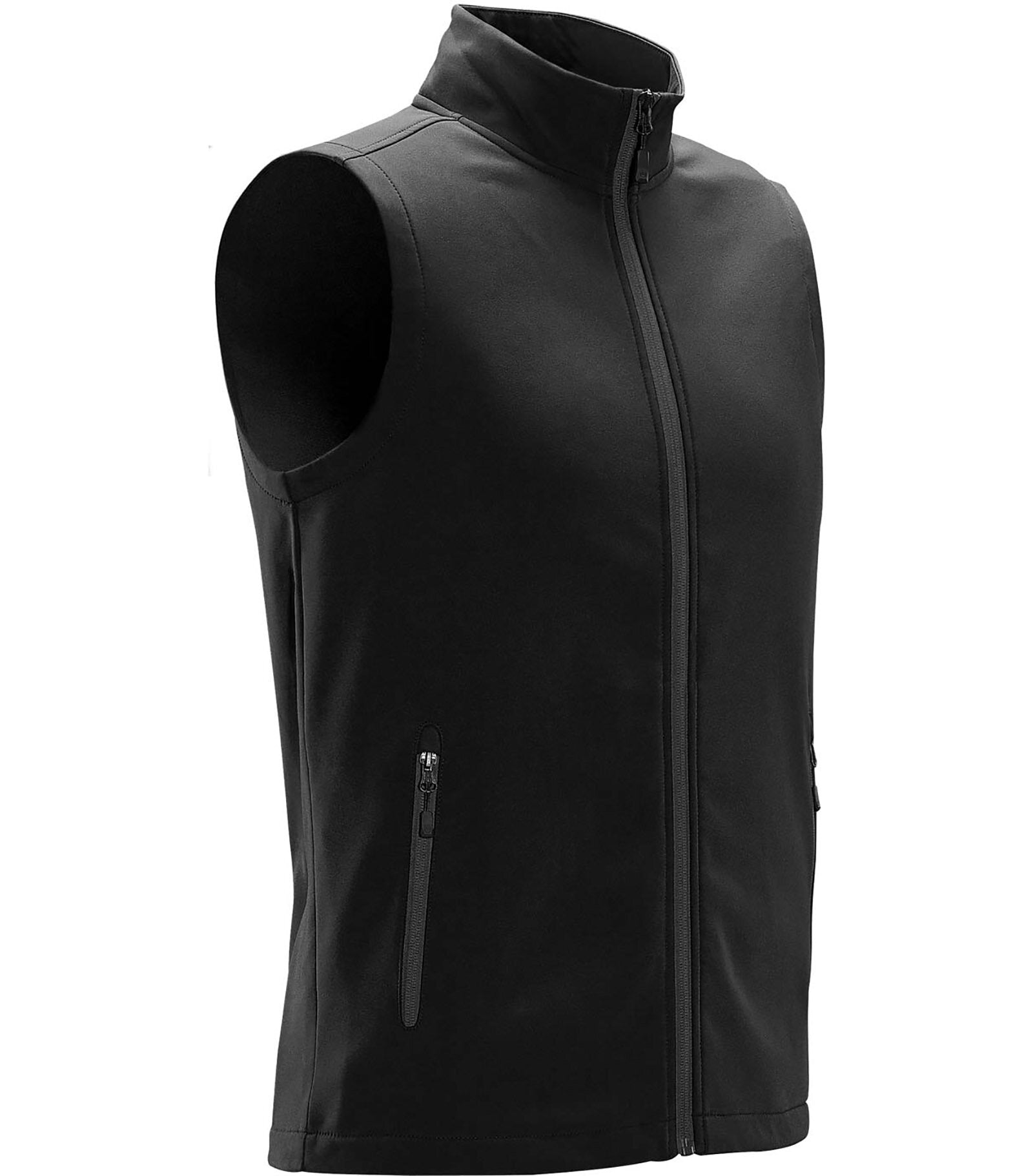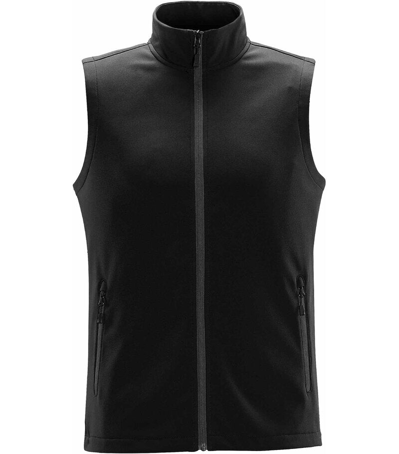 Softshellväst i mjukt väderbeständigt material, med vattenavvisande tyg som mellanskikt och invändigt fleecefoder.